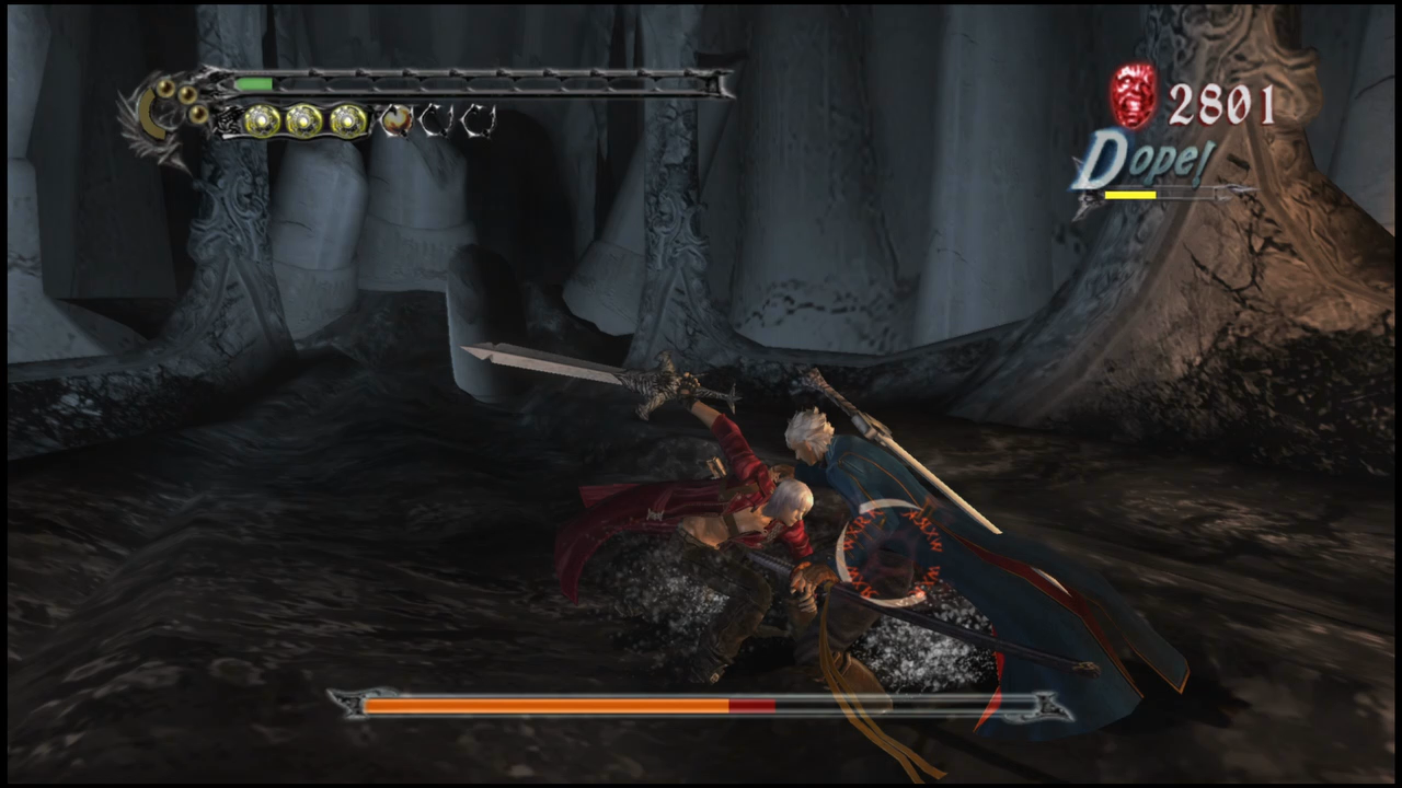 The enemies and the bosses are the hardest to take down in the series. For example, in mission 9, you have to take out the horde of bats that protect the boss before you can damage her. It was hard when I just tried to attack her directly, but once I used the Ebony & Ivory and the Aerial Cross technique with Agni & Rudra, I was able to defeat her. The final Vergil fight in this game is one of the best boss fights ever. He is very tough and there isn’t a lot of room for error. Figuring out the timing to dodge his hard-hitting attacks, finding an opening to get a decent combo in, and finding a way to avoid his demon form attacks made the fight very intense. This fight reminded me of fighting members of Organization XIII in Kingdom Hearts 2.