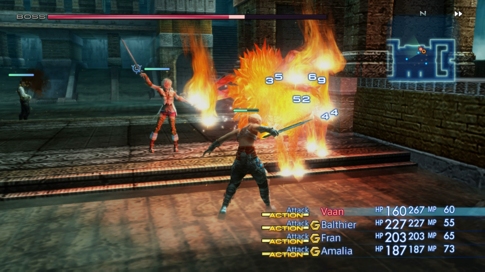 Doing hunts in the game reminds me of side quests in Xenoblade games, although it is slightly more tedious. Getting information about it through marks on hunt boards or from Montblanc and finding the petitioner in order to officially start the hunt seemed a little bit unnecessary to me, although it felt like I was gathering pieces of information that help me pull off the hunt. At first, doing the hunts with just Vaan was near impossible to complete, but were easy to complete once I got a full party. The speed up function in this game is very useful, as it made fights go by quick, especially ones where I only do basic attacks to take down monsters.