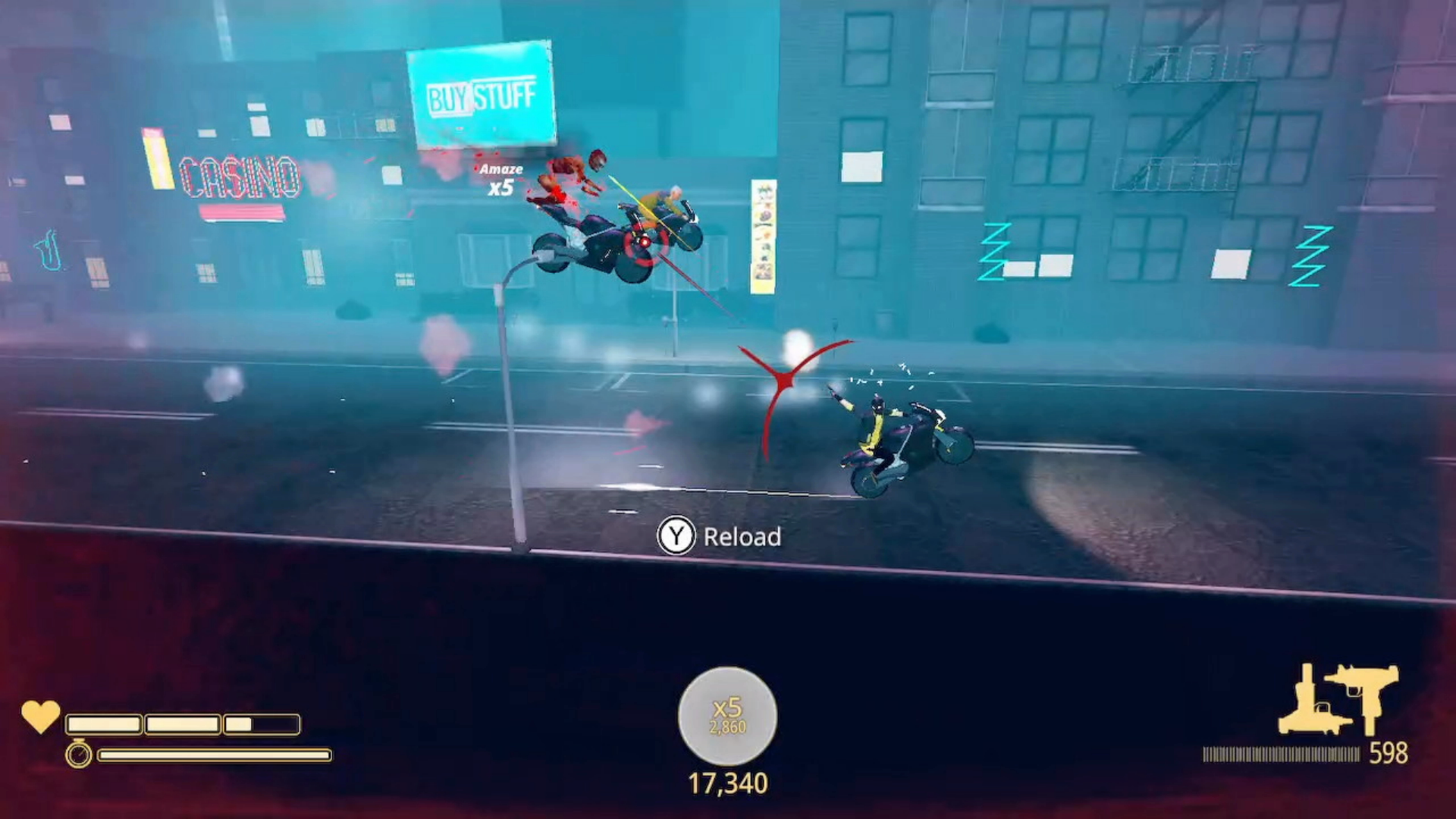 My Friend Pedro: I was really looking forward to this game ever since I played the demo at PAX East this year, and My Friend Pedro delivered. At first, the control scheme felt a little weird to me, with the ZL button allowing you to lock on and use your secondary gun and the L button used for dodging. I kept on getting crossed up and at times forgot to dodge when I wanted to. The ability to slow down time was surprisingly lenient with how slow the gauge drained as I used it, so I ended up using it more often. Slowing down time made it easier for me to take my time and pull off some flashy kills.